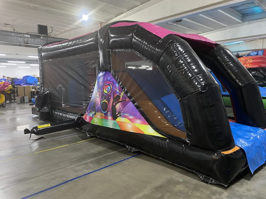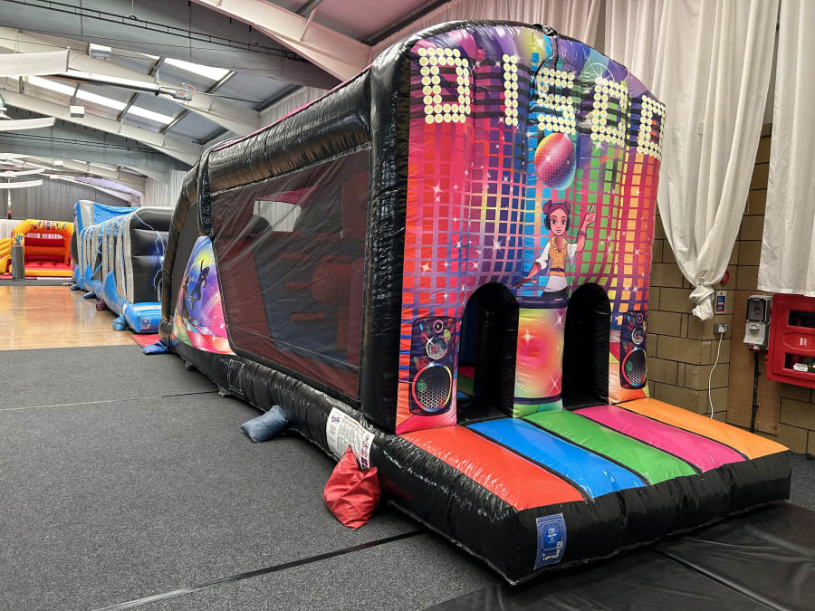 Our Disco fun run comes complete with disco lights and speaker system built in, as well as the bouncing area the fun run has a slide, available to hire throughout the Scottish Borders & North Northumberland including. Kelso, Peebles, Berwick upon Tweed & Galashiels. If you would like more information about our Disco Fun run do not hesitate to get in touch just fill out our enquiry form! CLICK HERE