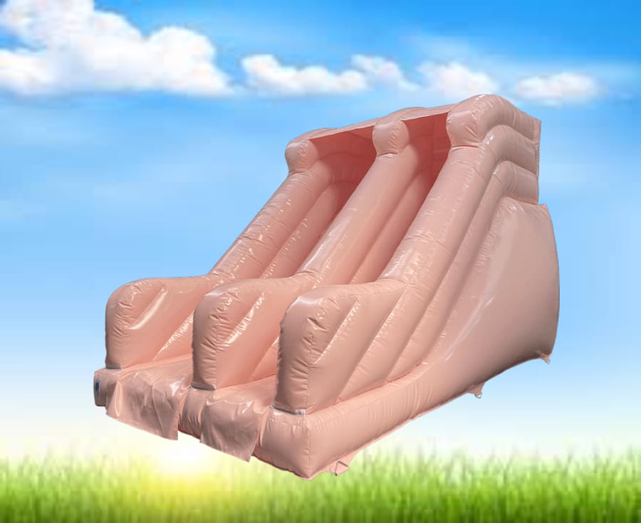 Our 8ft platform height inflatable slide in a lovely pastel peach colour is guaranteed to bring joy and laughter to kids and adults alike. Whether you are hosting a birthday party, corporate event, or any other special occasion, this bouncy slide is the perfect entertainment option for all ages. 🎊
