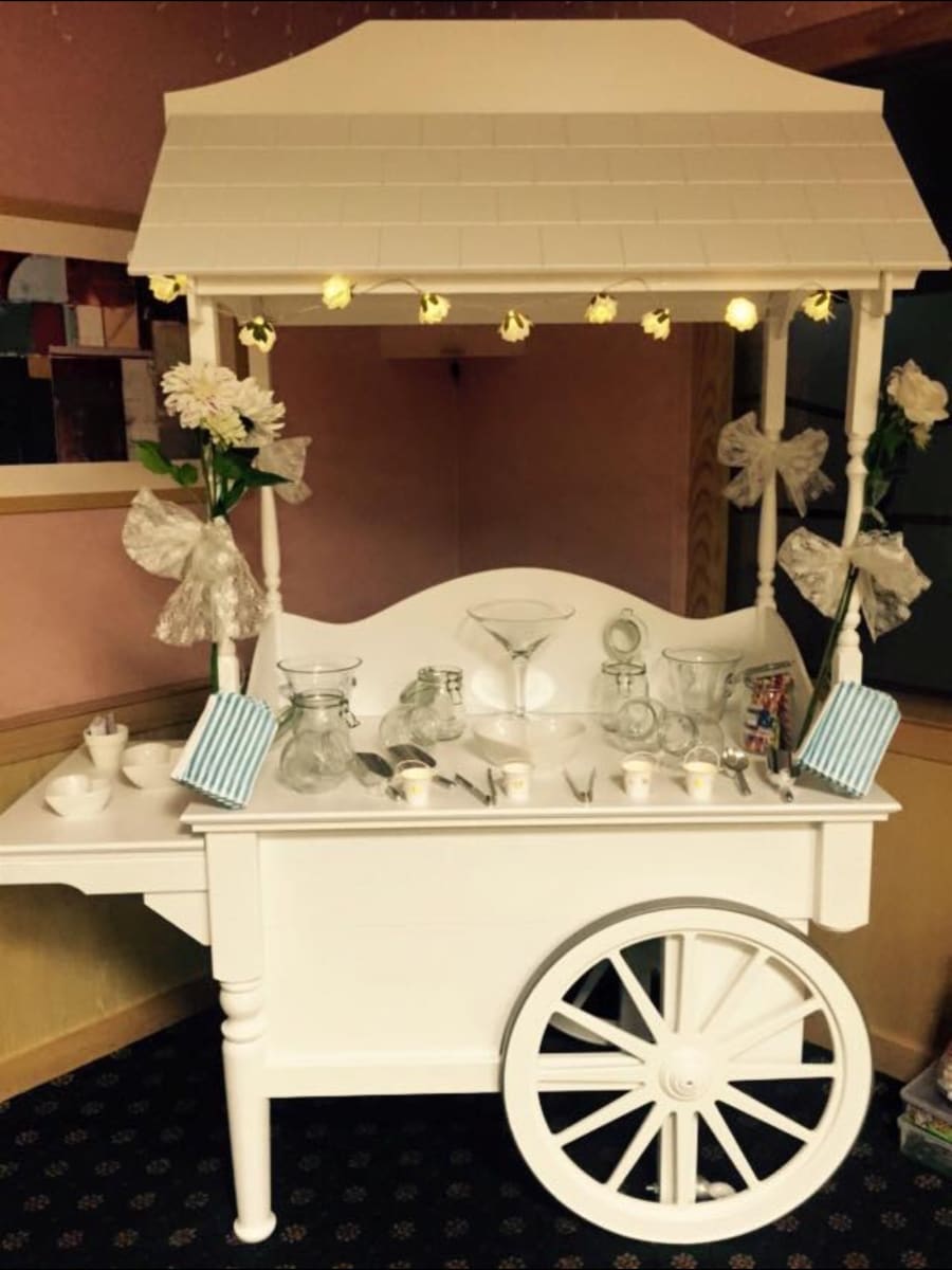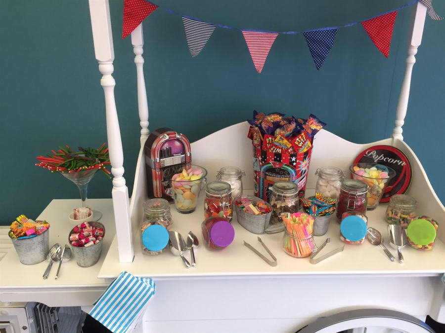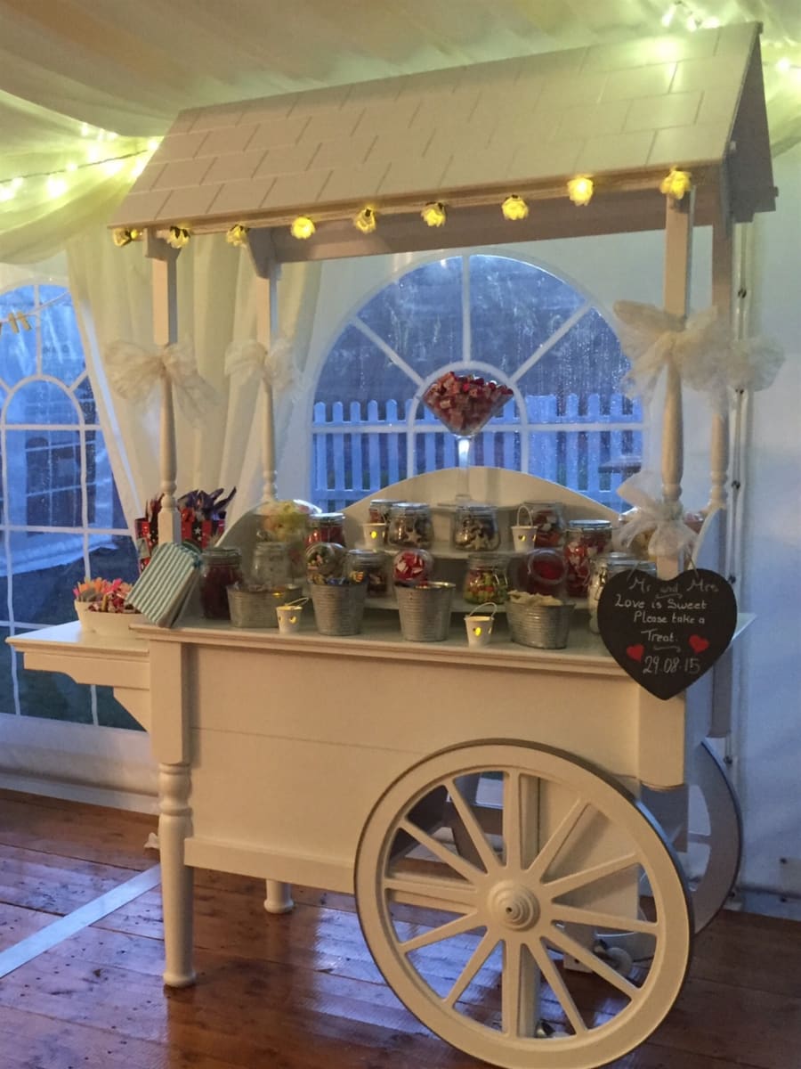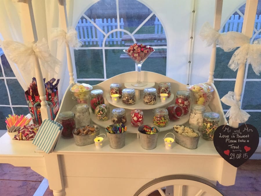 Our luxury candy cart is the centre attraction at many parties and weddings in the Scottish Borders and North Northumberland. Complete with a full range of tradional sweets of your choice or available to hire on its own and add your own sweets!