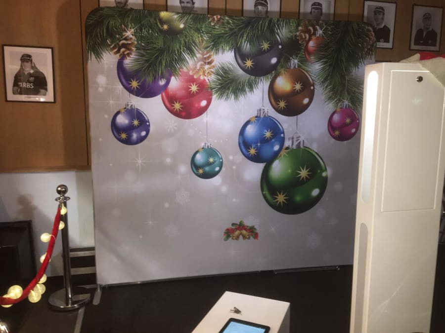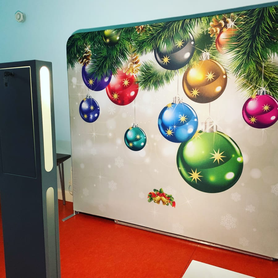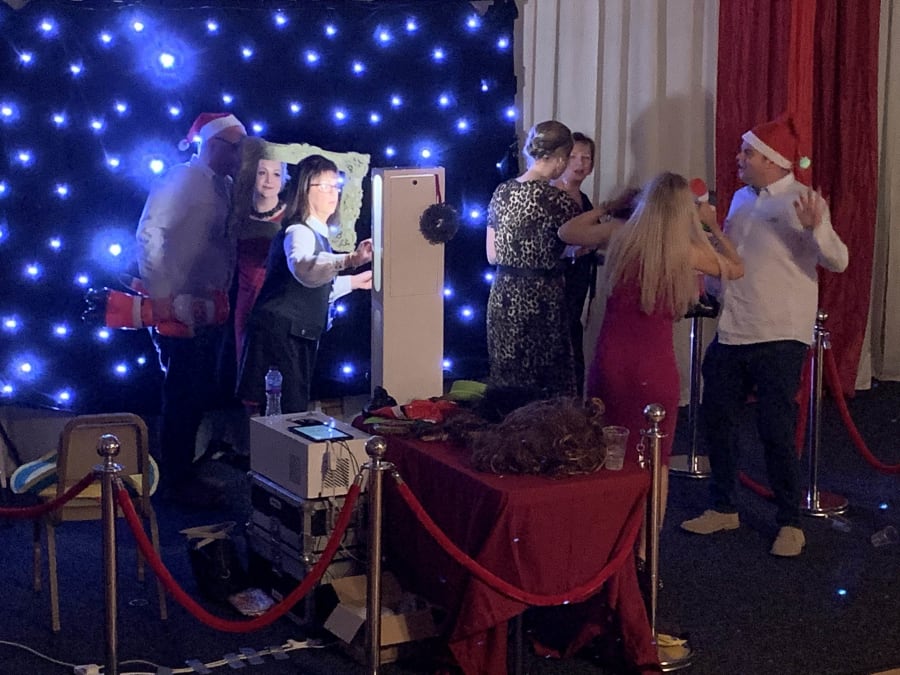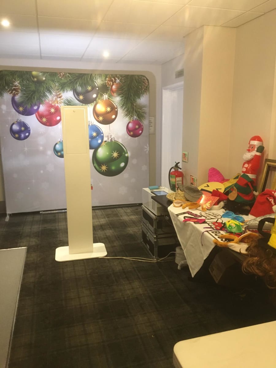 Our Christmas selfie pod is the perfect addition to any Christmas party. With a wintery backdrop and festive props its sure to capture some great moments and fun memories from the night.