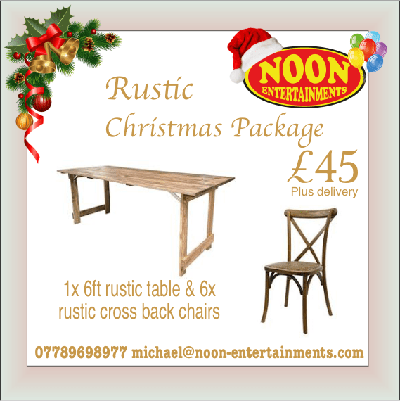 Rustic Christmas Table & Chair Package in Scottish Borders, Berwick upon Tweed, Peebles, Kelso, Galashiels, Melrose, Hawick