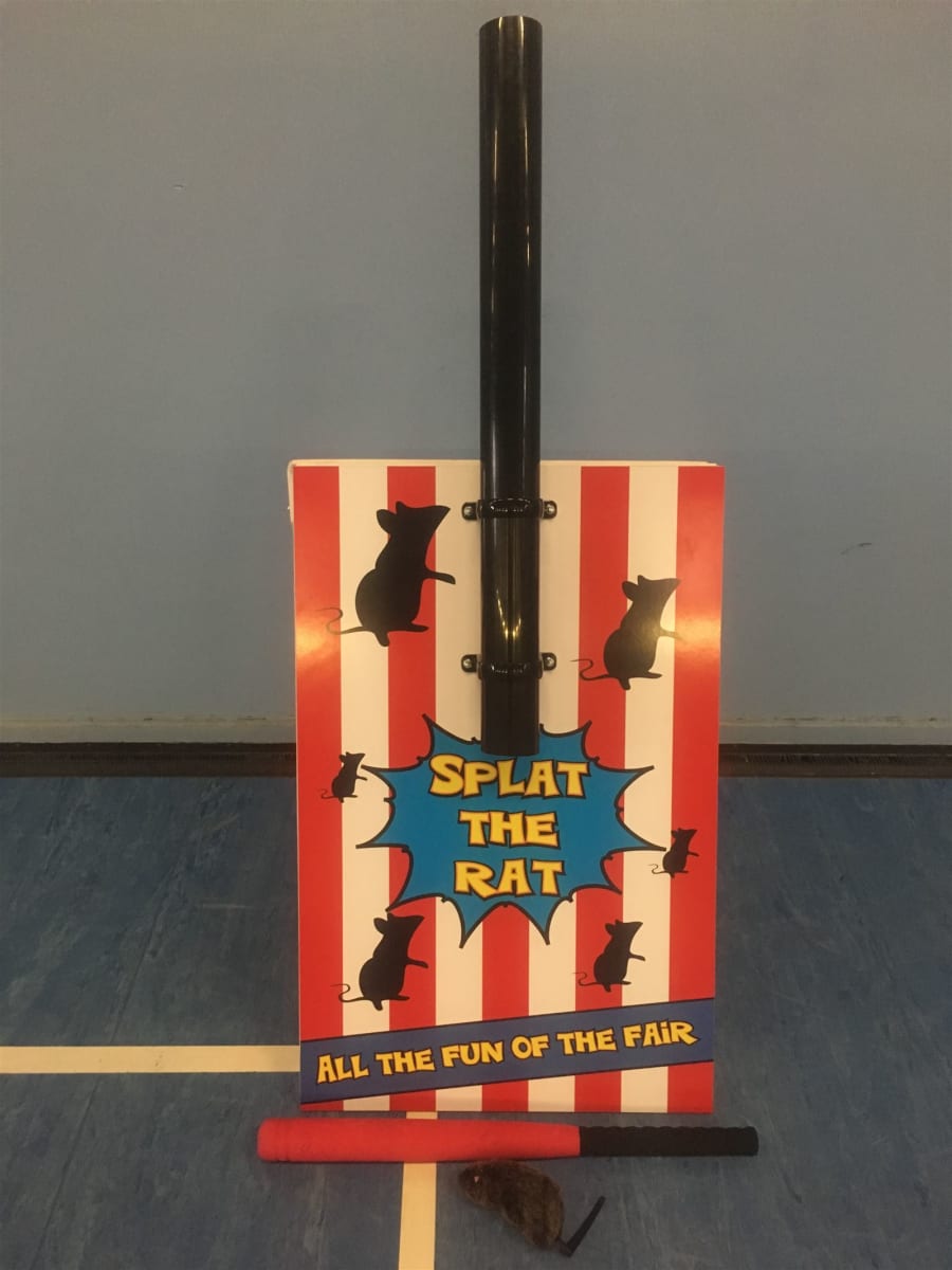 Our Splat the rat game is great to keep all ages entertained,Drop the rat down the pipe and hit it with the foam bat to win!