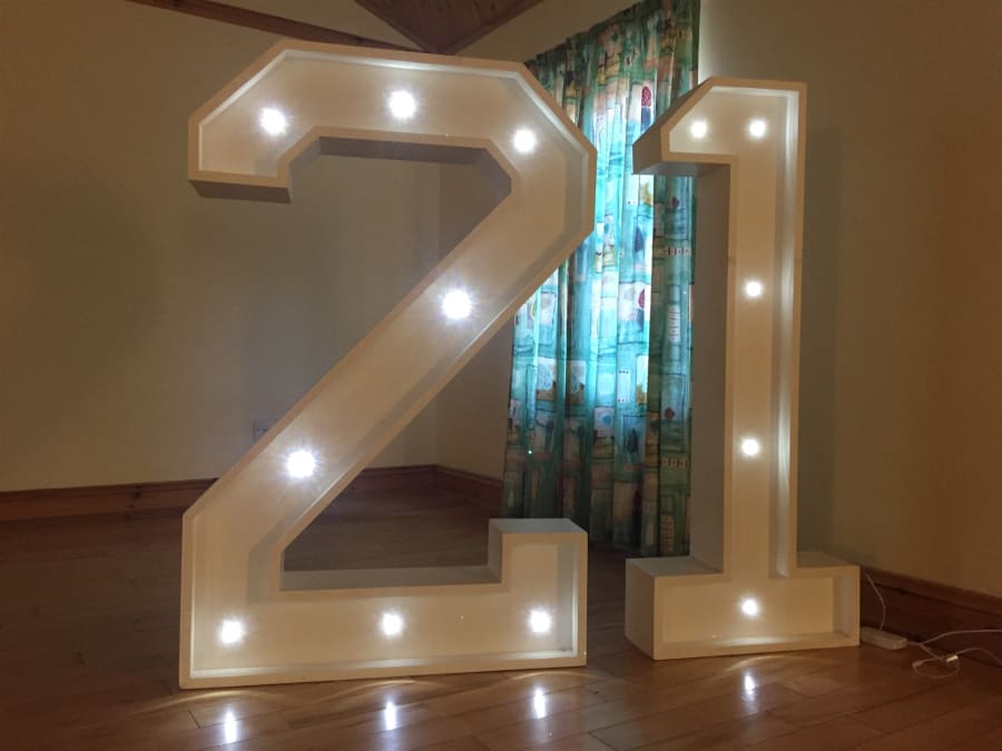 Our 4ft LED 21s perfect for a 21st Birthday. Can be hired on its own or along with our Professional Dj.