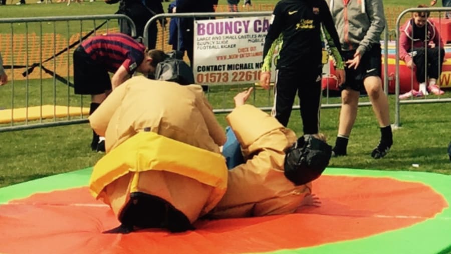 We are please to be able to offer these fantastic and extremely popular sumo wrestling suits available in both kids and teenager/adult sizes, allowing the whole family to join in together! These foam packed sumo suits will make you look similar to a huge clumsy Japanese wrestler! 4 helmets 4 neck protectors Large padded sumo mat