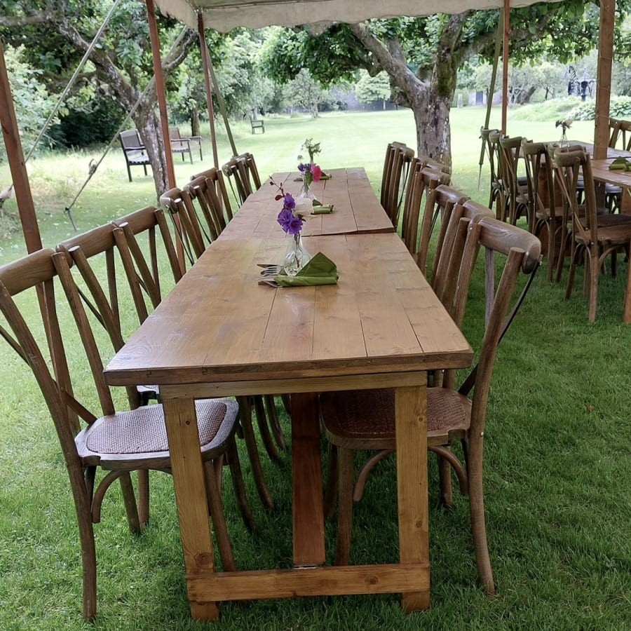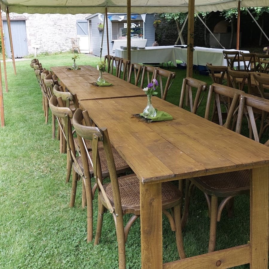 We currently have 250 rustic oak cross back chairs for hire, Available to hire across the Scottish Borders, Edinburgh & Northumberland.