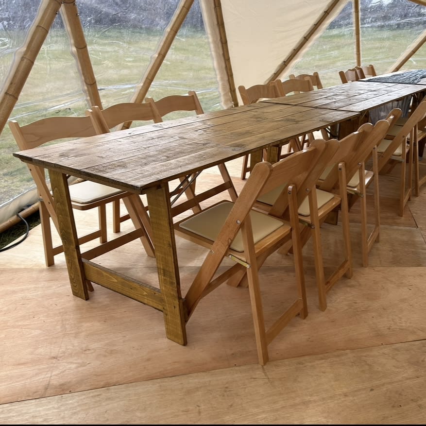 Rustic trestle table to hire, measuring 6ft x 2.6ft